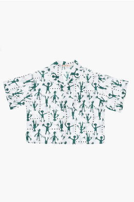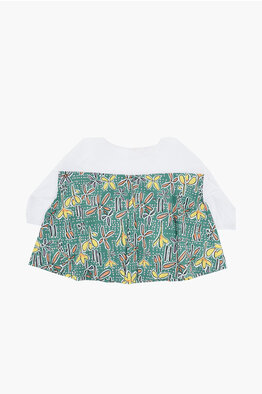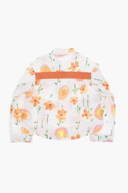 Floral Patterned Poplin Cotton Overshirt with Zip Closure
