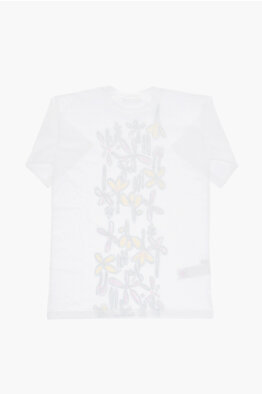 Solid Color Crew-neck T-Shirt with Glittery Logo