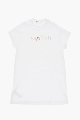 Short-Sleeved Sweatshirt Dress with Beaded Logo
