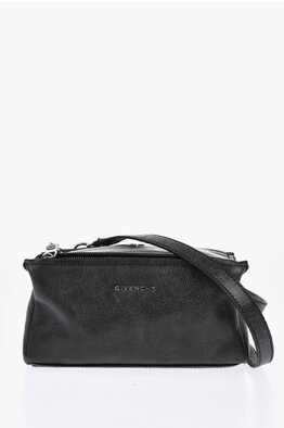 Hammered Leather Shoulder Bag PANDORA with Silver-Effect Logo