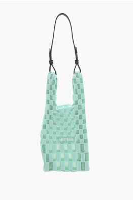 Knitted Check Tote Bag with Vegan Leather Shoulder Strap