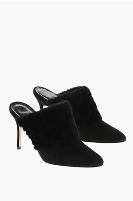 Suede Mules PELOS with Eco-Fur Detail, 10cm Heel