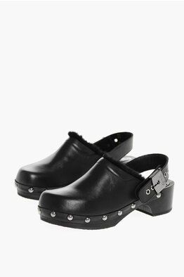 HFD Leather Clogs PESCURA MAYA with Studs and Faux-Fur Lining 5cm Heel