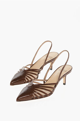 Lizard-Effect Embossed Leather Slingbacks with 6cm Heel