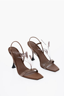 Satin Sandals GEMMA embellished with Strass and Feather Detail, heel 10.5 cm
