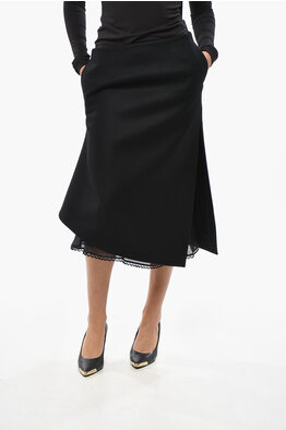 Gonna a Trapezio in Lana con Sottoveste in Chiffon