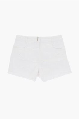 Shorts in Denim Stretch Effetto Vintage con Logo Ricamato