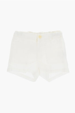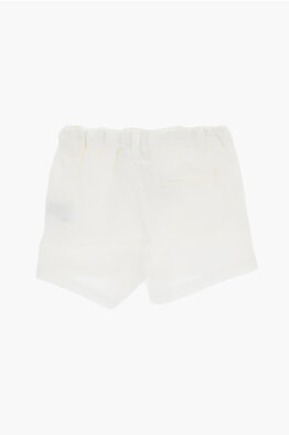 Shorts in Lino a Tinta Unita con Passanti