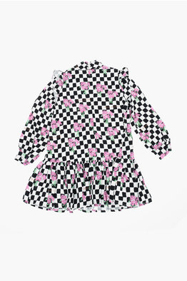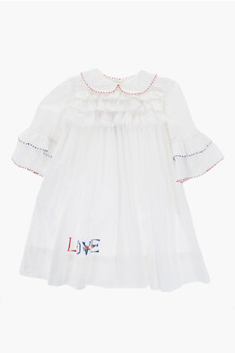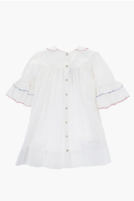 Vestito in Cotone con Rouches e Colletto Peter Pan