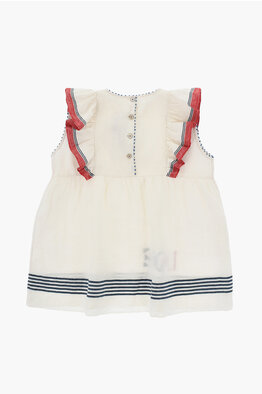 Vestito Svasato in Lino con Maniche Volant