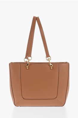 Borsa Tote in Ecopelle con Doppia Tasca e Morsetto Dorato