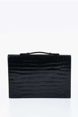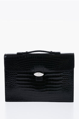 Borsa Business in Pelle di Coccodrillo con Chiusura a Scatto