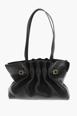 Borsa Drappeggiata in Pelle Con Monogram Effetto Dorato