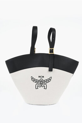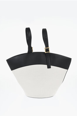 Mini Borsa Tote In Cotone con Finiture in Pelle