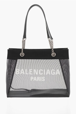 Borsa Tote Semitrasparente con Dettagli in Pelle