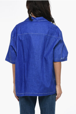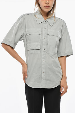 Camicia Boxy Fit a Maniche Corte con Doppio Taschino