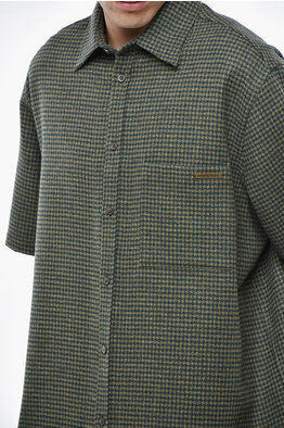 Camicia in Lana e Cashmere a Maniche Corte con Fantasia Pied-de-Poule