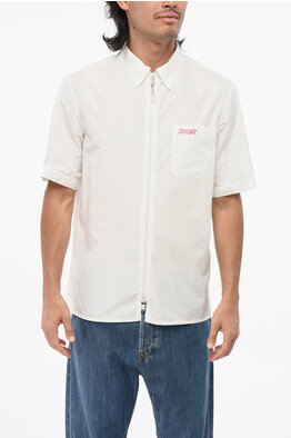 PARLEY Camicia a Maniche Corte in Tinta Unita con Chiusura Zip