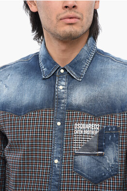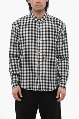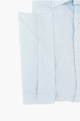 Camicia in Popeline di Cotone a Quadretti con Collo Francese