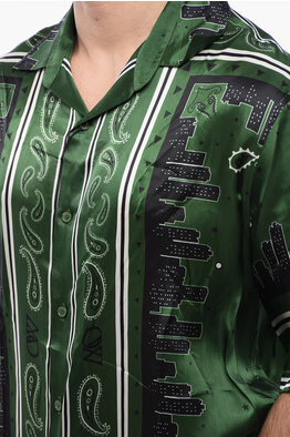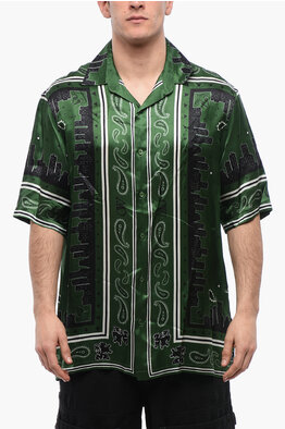 Camicia Bowlling in Misto Cotone con Ricami Paillettati