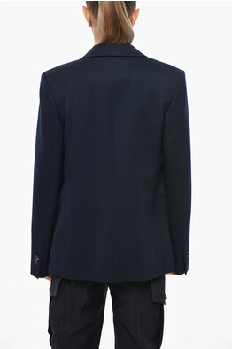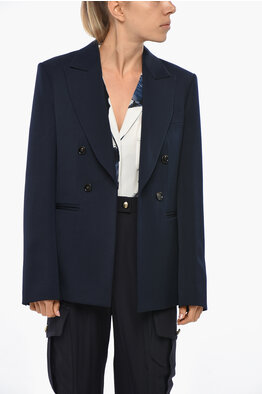 Blazer Doppiopetto in Lana con Tasche a Filo
