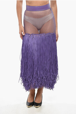 Gonna Midi In Pelle con Sottoveste Frangiata