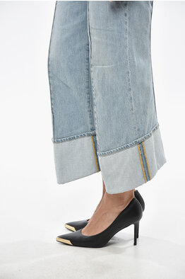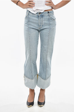 Jeans Cropped Fit Lavaggio Chiaro con Risvolti