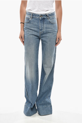 Jeans Super Wide Leg con Lavaggio Medio 30cm