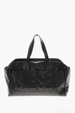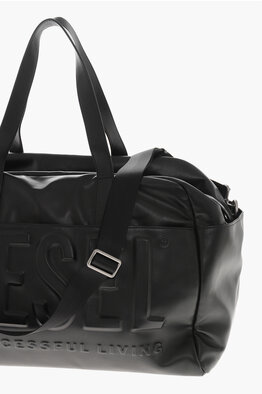 Borsone da Viaggio in Pelle Vegan con Logo in Rilievo