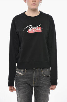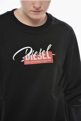 Felpa Girocollo F-REGGY-BLIN in Cotone Garzato con Logo Impreziosito da Strass