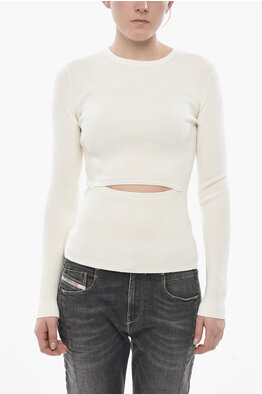 Maglia Girocollo M-PERIS a Costine con Dettaglio Cut-Out