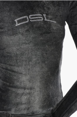 Maglia Mock-neck T-SLIM-N1 in Ciniglia con Logo in Strass