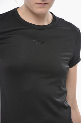 T-Shirt Girocollo T-ANGIE-OUT in Tinta Unita con Dettaglio Argentato