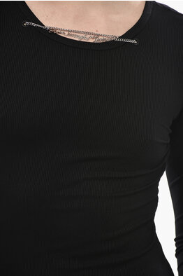 Maglia Leggera M-APRIL A Costine con Applicazione Collana a Catena