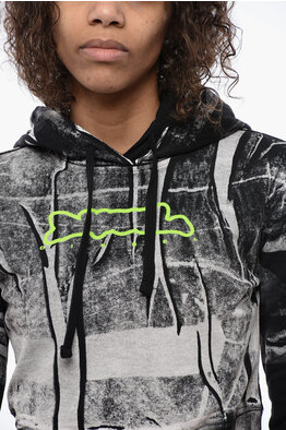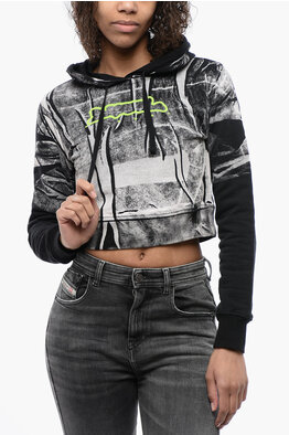Felpa Hoodie Crop con Logo Goffrato
