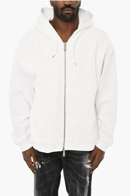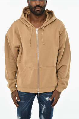 Felpa in Cotone Garzato con Cappuccio e Chiusura Zip