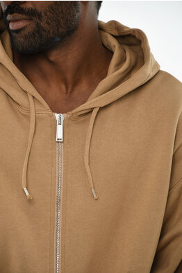 Felpa Hoodie in Cotone Felpato con Chiusura Zip