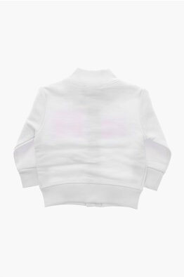 Felpa in Cotone Garzato Stampata con Mezza Zip