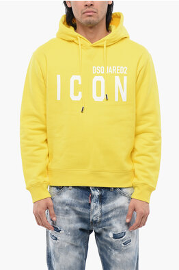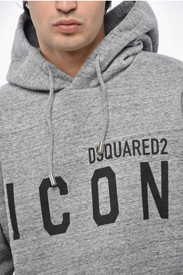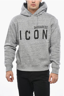 ICON Felpa Hoodie in Cotone Felpato con Monogram a Contrasto