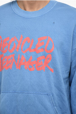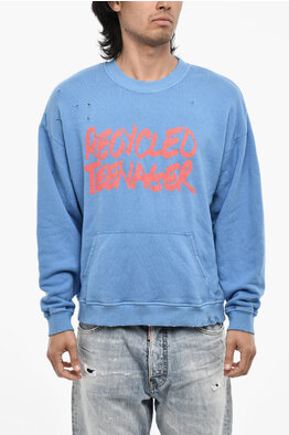 Felpa Girocollo Effetto Vintage con Tasca a Toppa