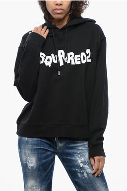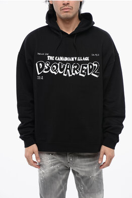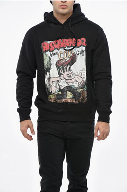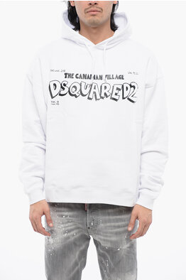 Felpa Hoodie In Cotone Felpato con Maxi Stampa Frontale