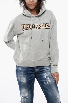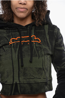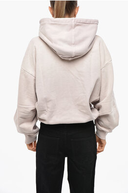 RED TAG Felpa Hoodie F-SLIMMY Crop in Cotone Garzato con Logo Floccato