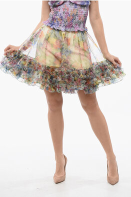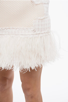 Minigonna in Tweed con Fondo in Piume