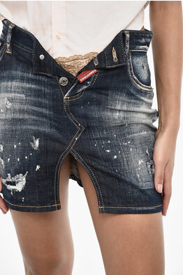 Minigonna In Denim Effetto Distressed