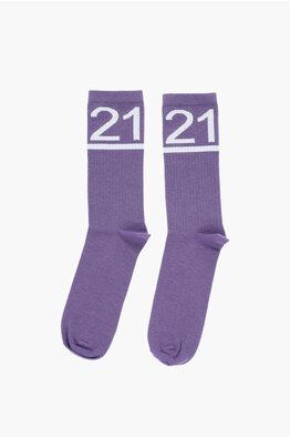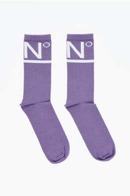 Calzini in Misto Cotone con Logo a Contrasto