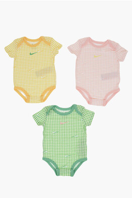 Set 3 Paia di Body a Quadri Con Manica Corta