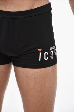 ICON Boxer in Cotone Stretch con Logo Stampato e Cuori in Rilievo