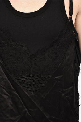 Tank Top Underwear in Misto Seta con Pizzo sul Fondo