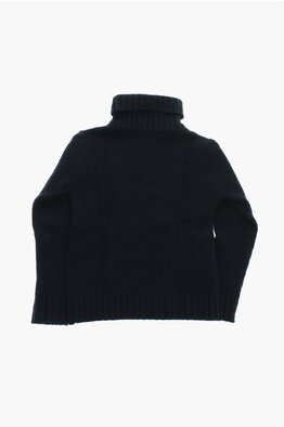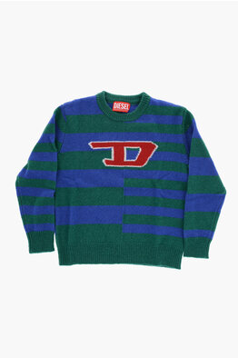 Maglia Girocollo in Misto Lana con Logo Jacquard