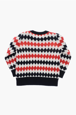 Maglia Girocollo in Lana Vergine con Motivo Rombi